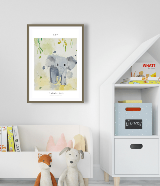 Børne Navneplakat med elefant