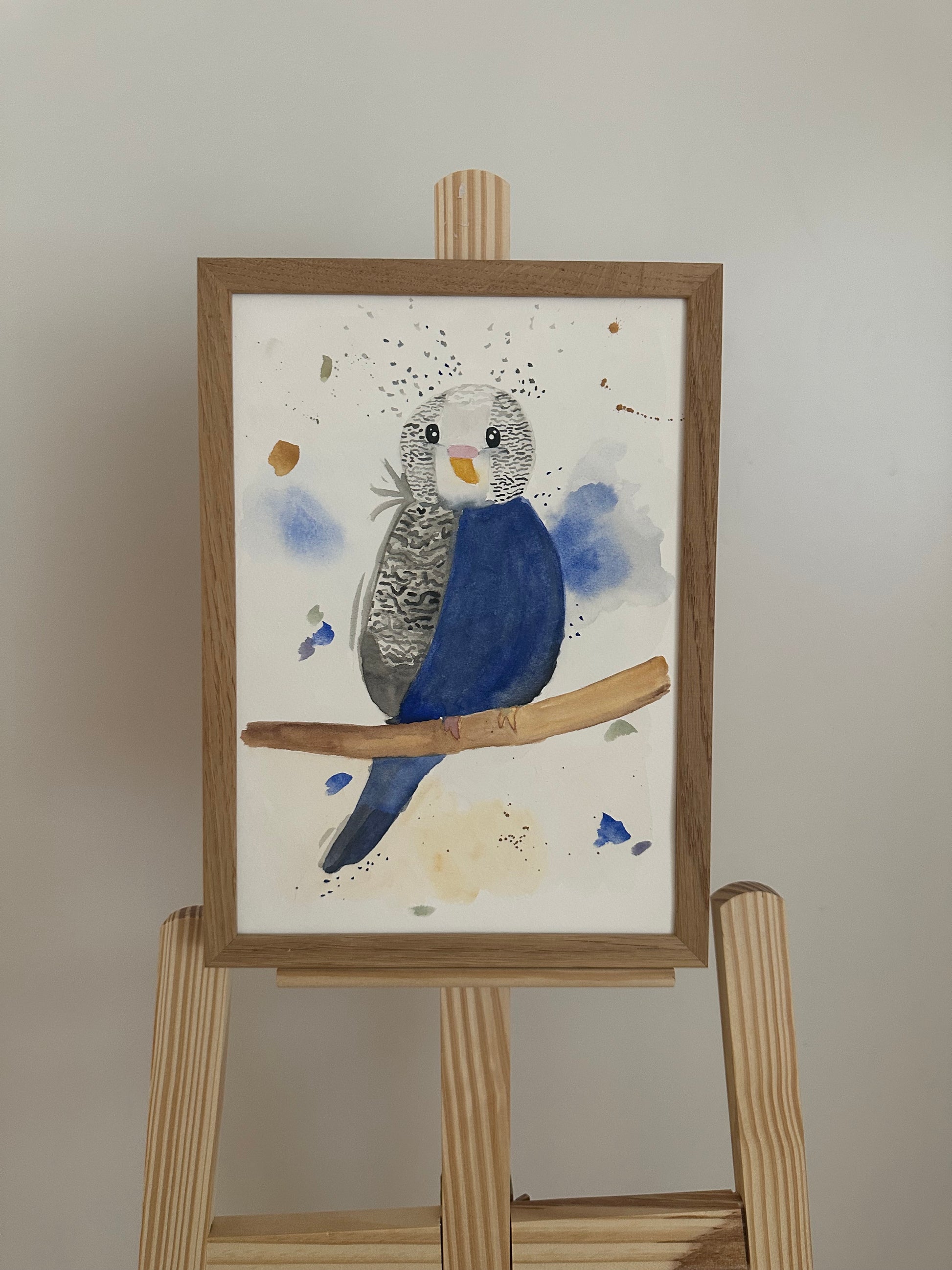 Akvarelmaleri af en undulat. Der findes 20 litografier af maleriet, dette er originalen. Ramme medfølger ikke.